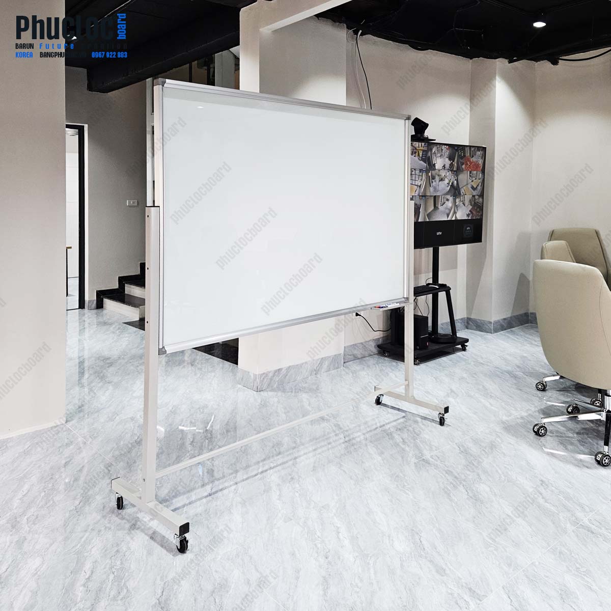 Khung bảng làm từ chân sắt hộp sơn tĩnh điện chống rỉ sét, mang đến vẻ đẹp cứng cáp và bền bỉ theo thời gian. Đặc biệt, chân bảng còn được trang bị bánh xe cao su linh hoạt, giúp việc di chuyển bảng từ phòng họp này sang phòng họp khác, hoặc giữa các không gian trong văn phòng, trường học trở nên dễ dàng và tiện lợi.
