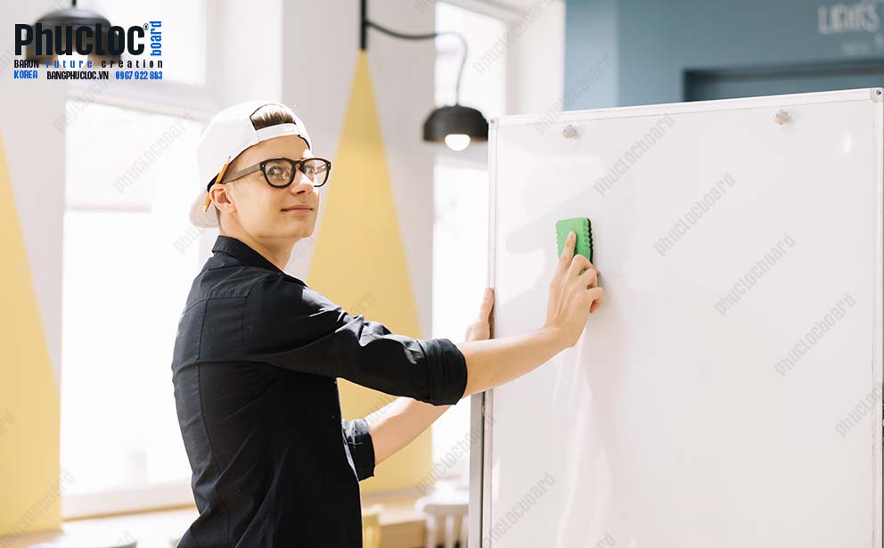 Vẫn xoá rất dễ, khuyến cáo từ Bảng Phúc lộc và nhãn hàng DK Steel: Bạn nên sử dụng khăn mềm ẩm vệ sinh sau mỗi lần để mực bám lâu trên mặt bảng. Hạn chế dùng các chất tảy rửa mạnh để vệ sinh vì nó sẽ ảnh hưởng đến độ bền của mặt bảng
