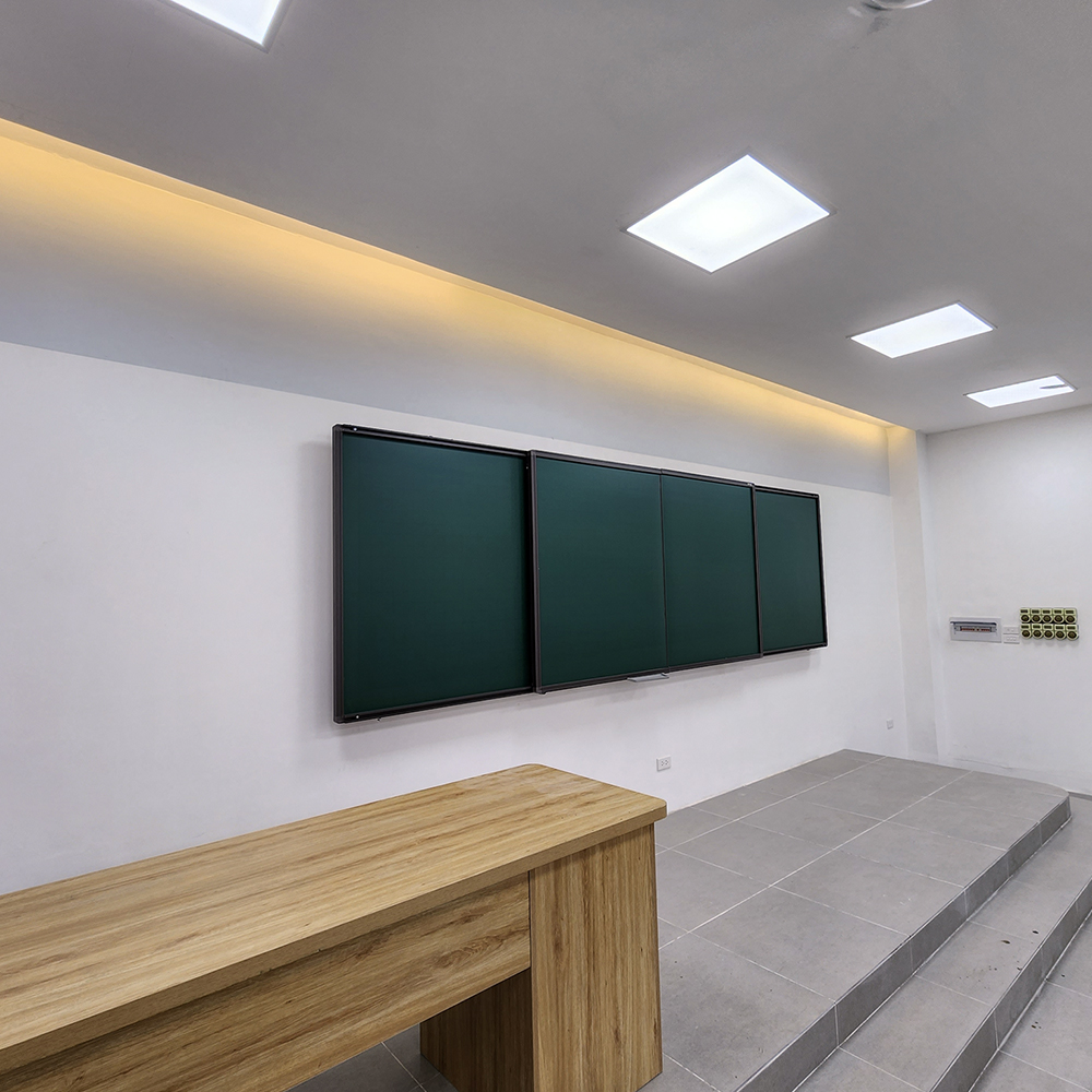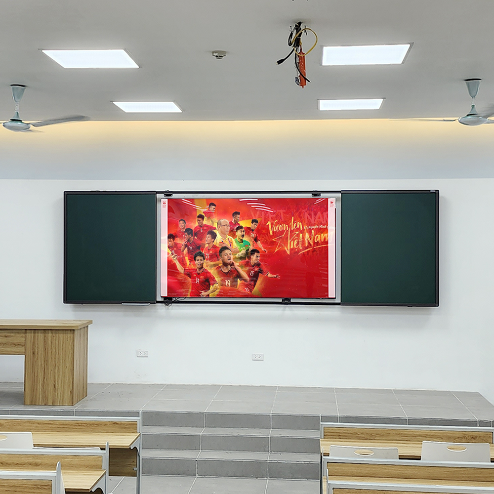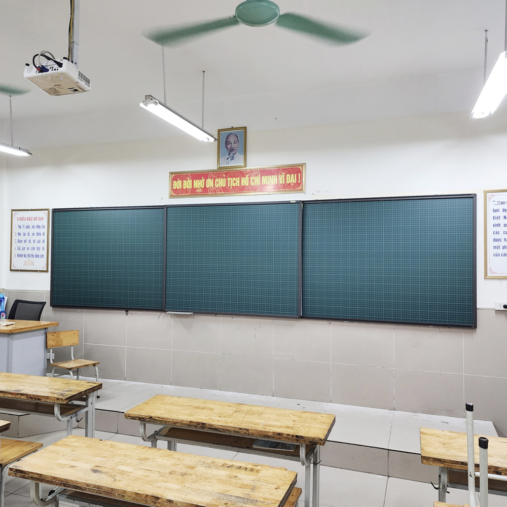 2. Chia bảng (bố cục bảng): Tùy theo đặc thù môn học, theo nội dung trình bày, cũng như kích thước bảng cụ thể mà phân chia bảng cho phù hợp. Thông thường đều chia thành ba phần đều bằng phấn. Việc phân chia này sẽ đảm bảo các nội dung được trình bày trên bảng là đầy đủ, khoa học. Nếu trong phòng học có lắp màn chiếu chiếm một phần diện tích bảng thì quá trình sử dụng đòi hỏi giáo viên phải kết hợp hài hòa giữa màn chiếu và bảng tránh trường hợp một phần bảng bị lãng phí.
