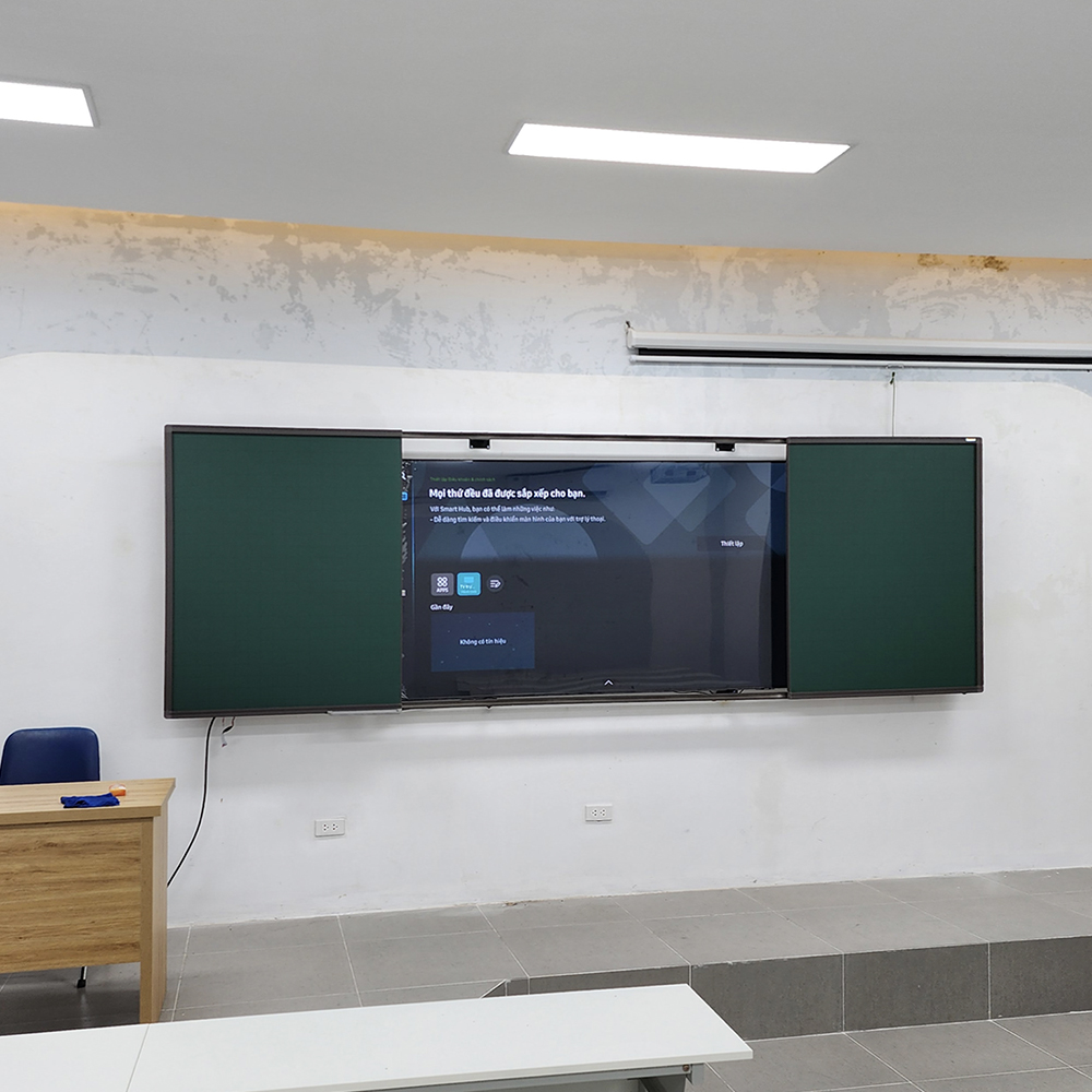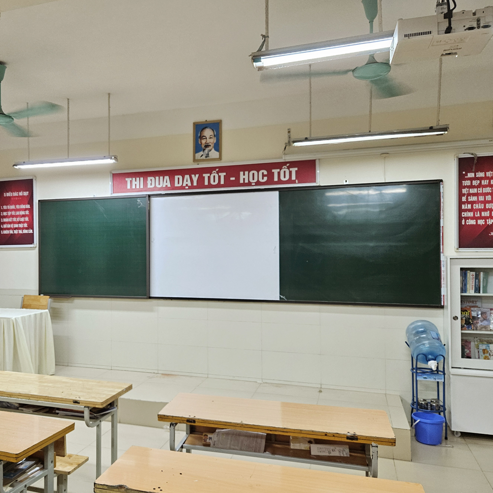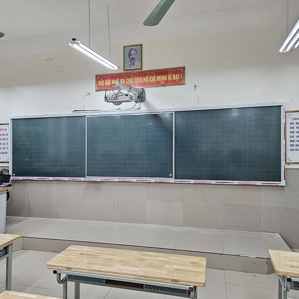 - Phần giữa bảng dùng để giải thích, vẽ, phân tích, xóa thường xuyên. Những kiến thức liên quan, những công thức, các đại lượng liên quan đến nội dung giảng dạy được giáo viên sử dụng và thế hiện ở nội dung phần trung tâm của bảng như các công thức toán học, công thức vật lý hay các phương trình hóa học….Việc viết công thức kết hợp giải thích các đại lượng trong công thức sẽ làm rõ hơn, minh họa đầy đủ hơn nội dung giảng dạy.